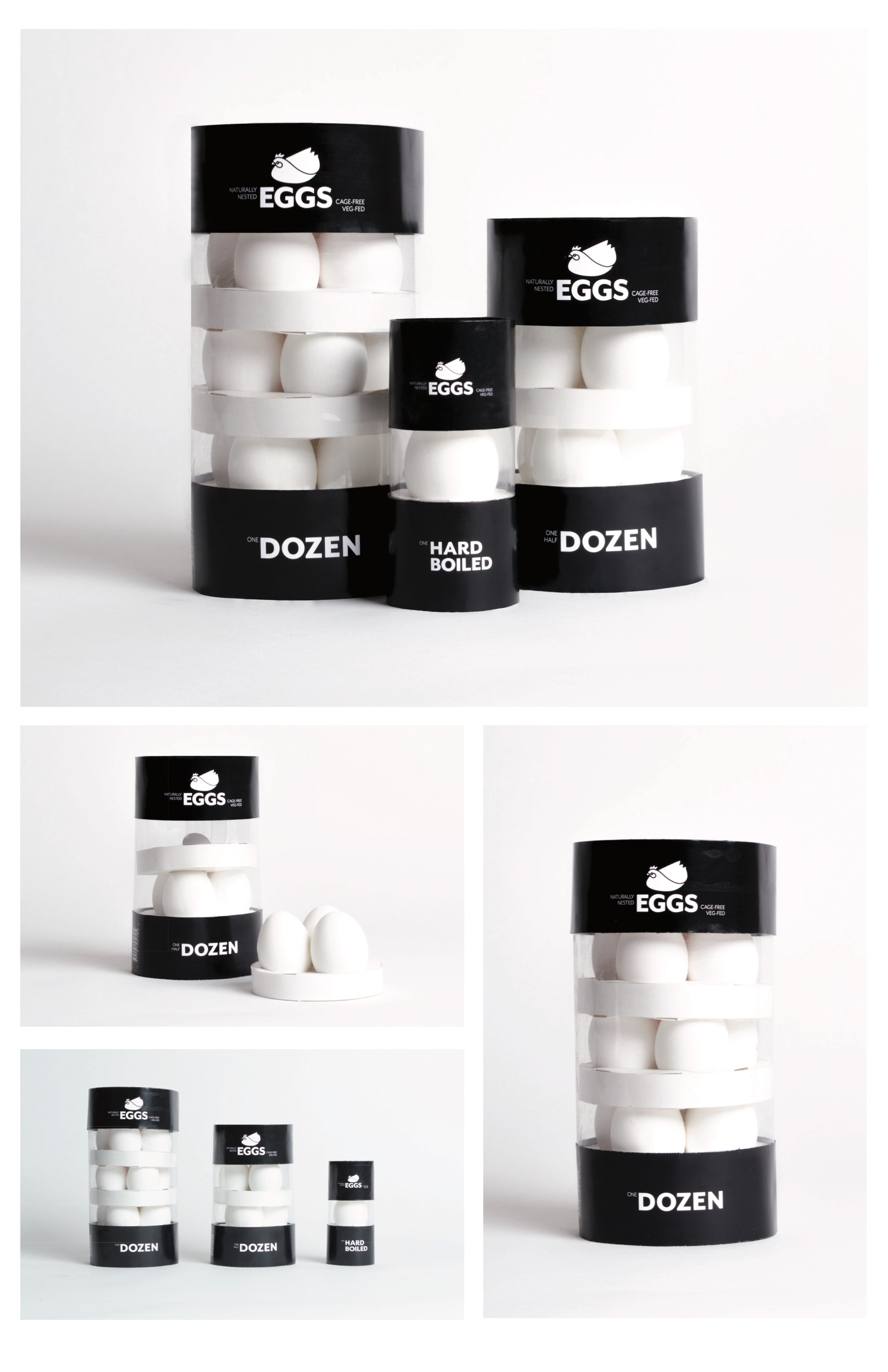 I chose to redesign the humble and annoying egg carton for our packaging project. I thought a lot about the experiences a consumer has with egg packaging, and designed to address some of those concerns. I also interviewed a cashier at the Co-op to find out what issues grocery stores have with egg cartons. The high-contrast black and white packaging is striking and a surprise to consumers of natural products. The design plays on the inherit strength of the egg shape, is easily carried in one hand, may be placed more logically in a shopping bag, and fits nicely in the refrigerator. 2017 AAF Spokane Student Gold District XI Student Gold District XI Best of Show